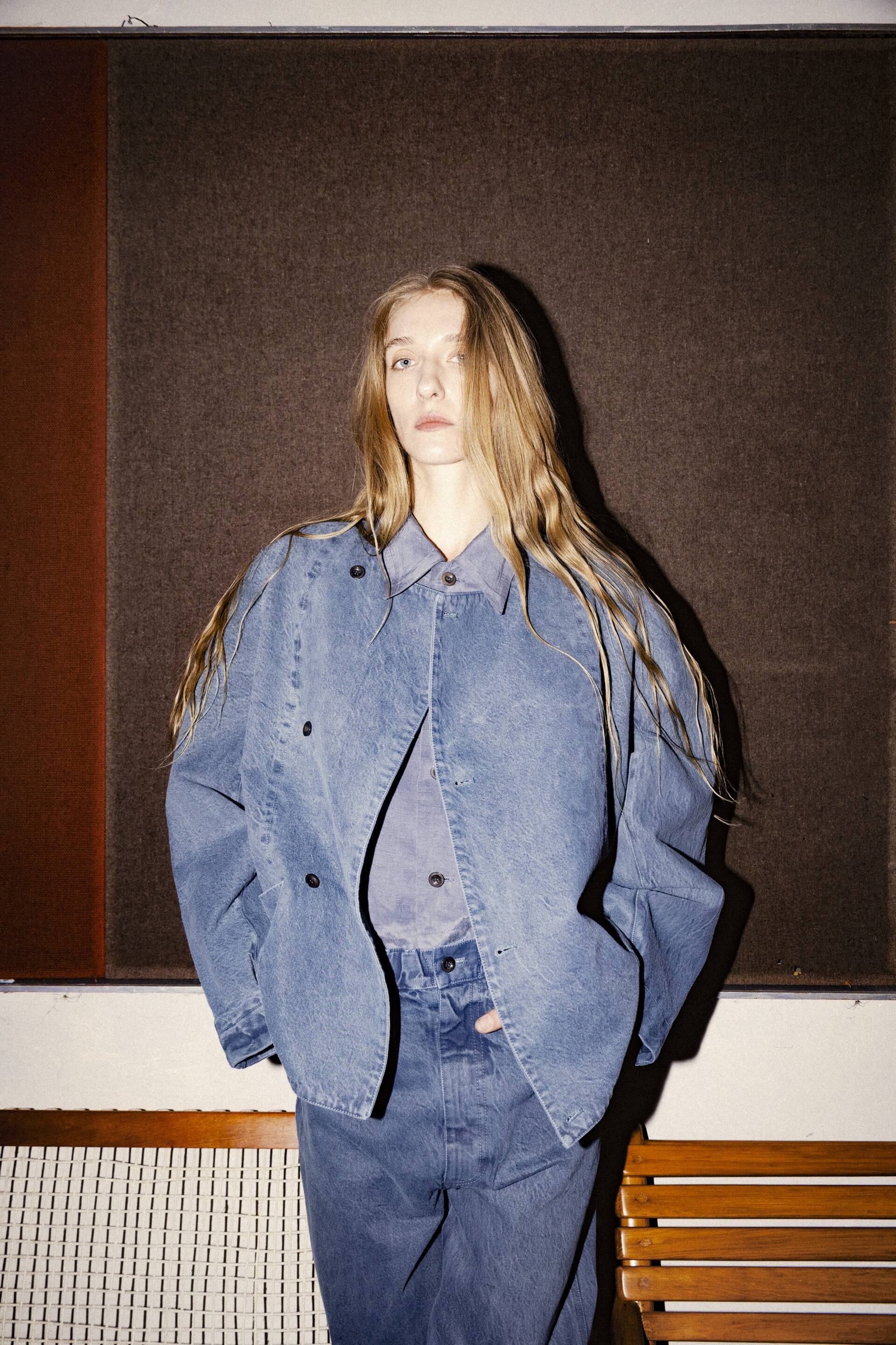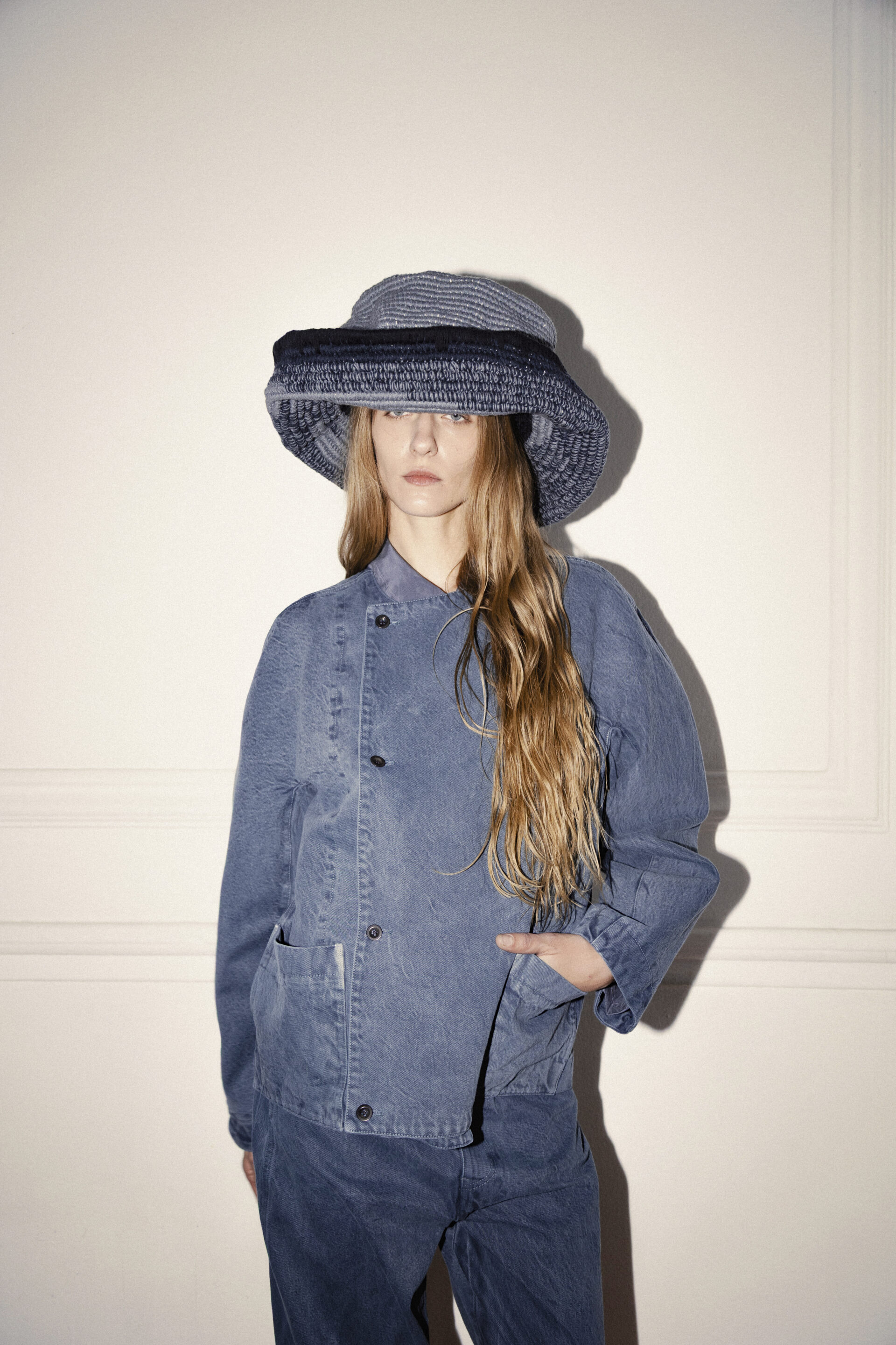 • Denim con semillas visibles tejido en Lombardía y teñido con pigmentos naturales.