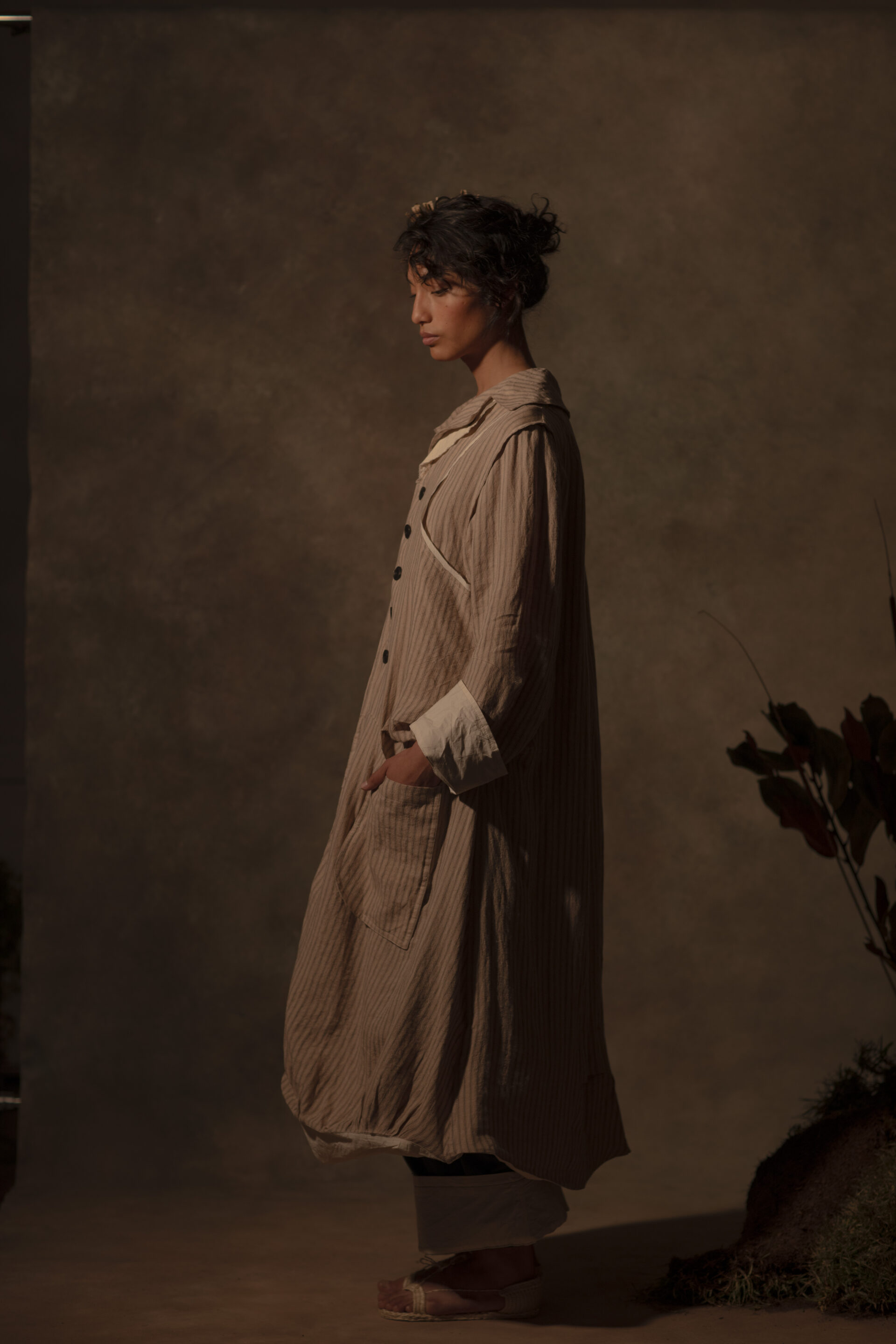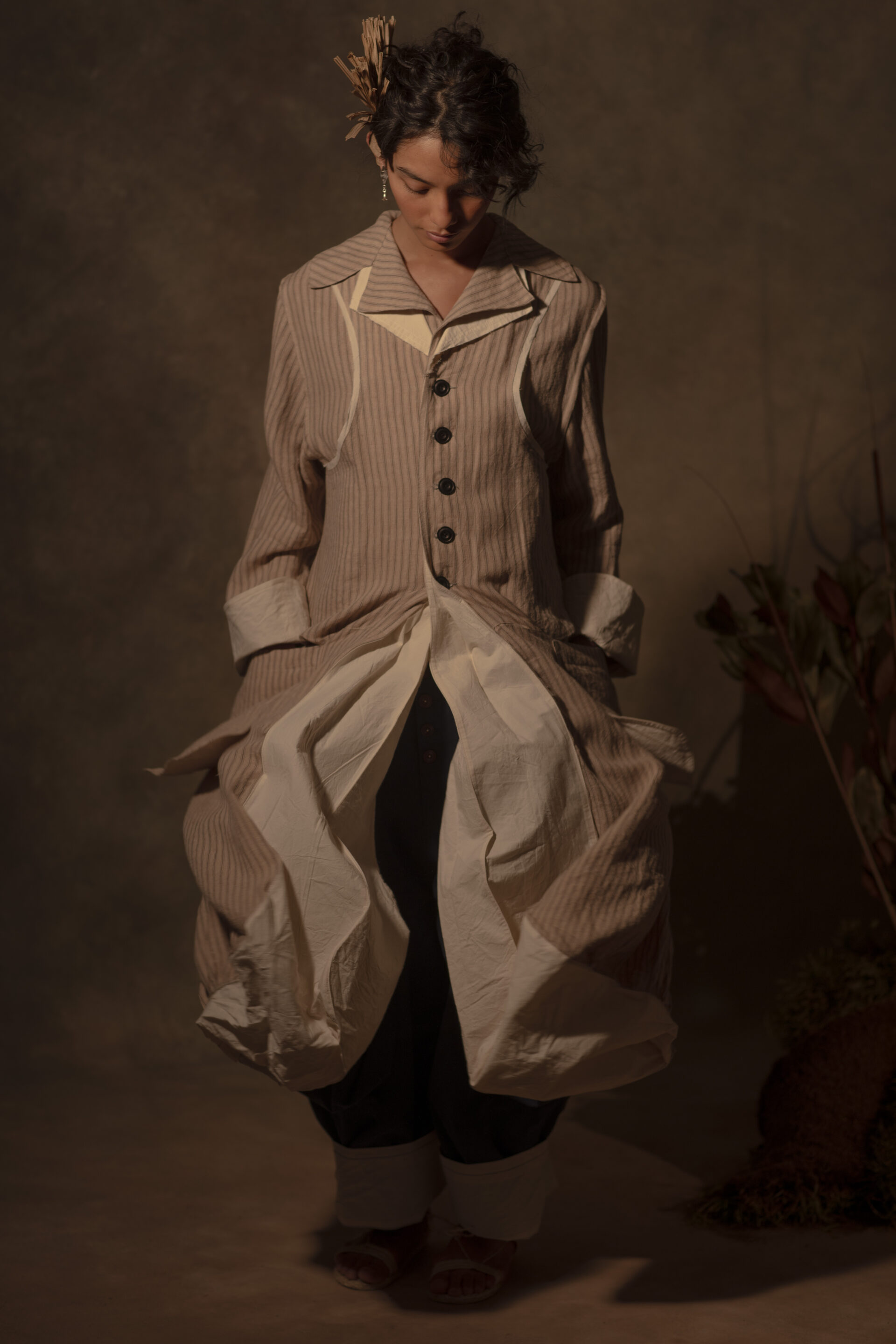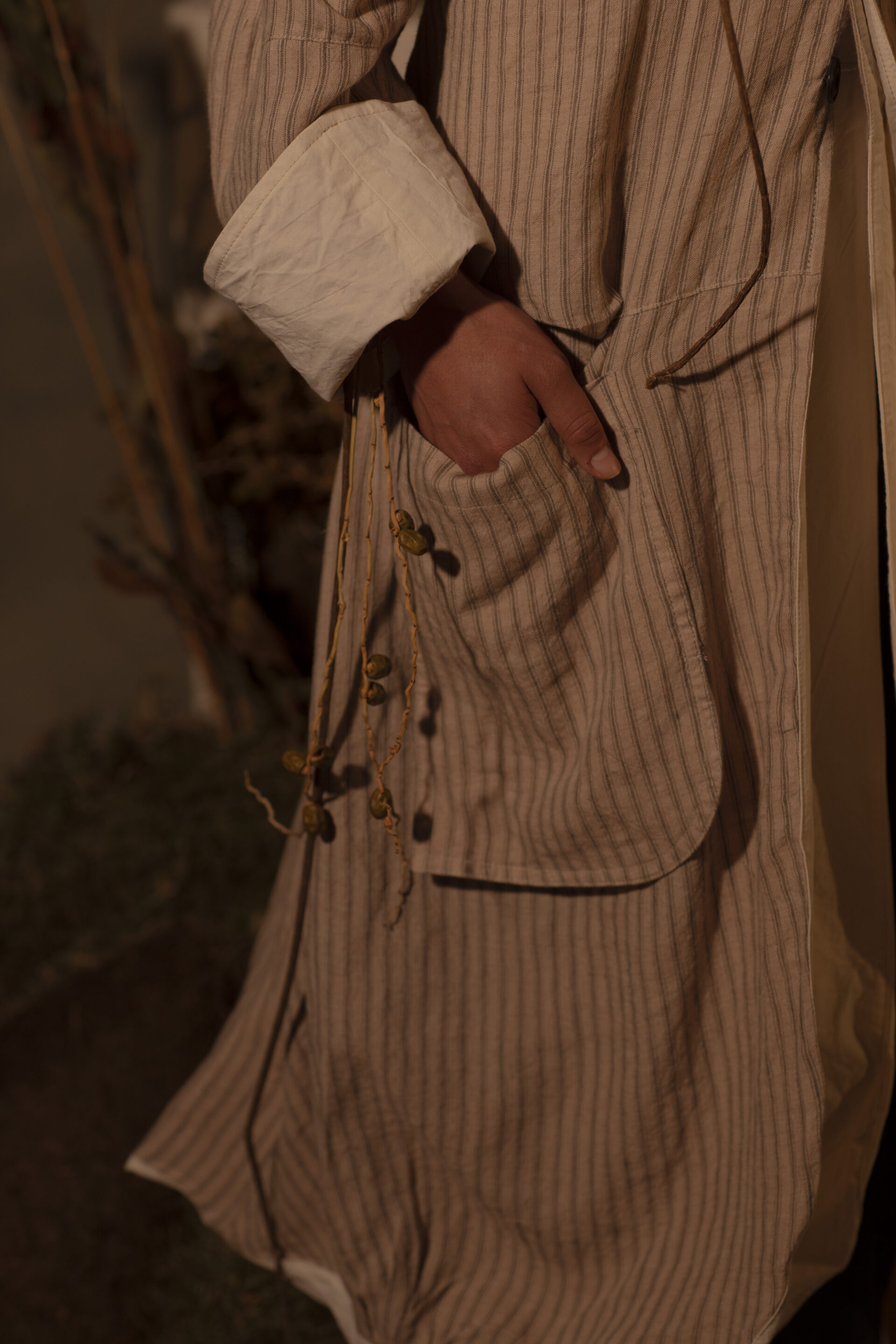 - Cierre frontal con cinco botones de corozo cosidos a mano.